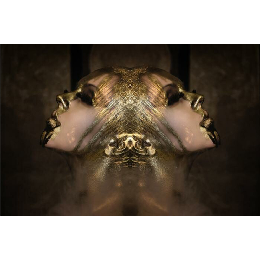 Glasschilderij Mensen 'Gezicht' Goud/Zwart Haarscherpe Afbeelding | Glasschilderijshop