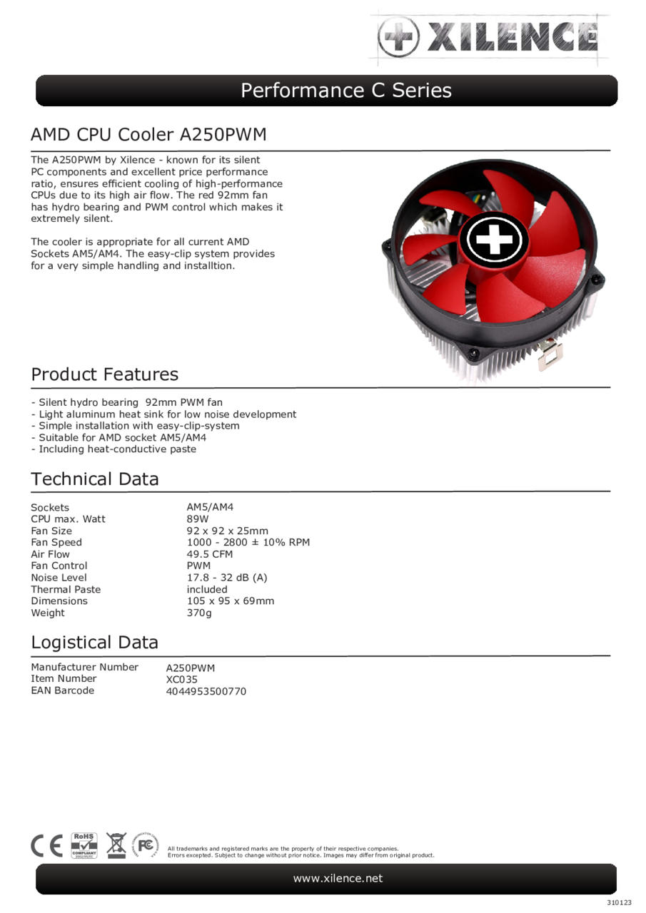 Xilence Xc035 A250pwm Cpu Cooler Am3 Am3 Am2 Am2 Fm1 940 939 754 Performance C A250pwm
